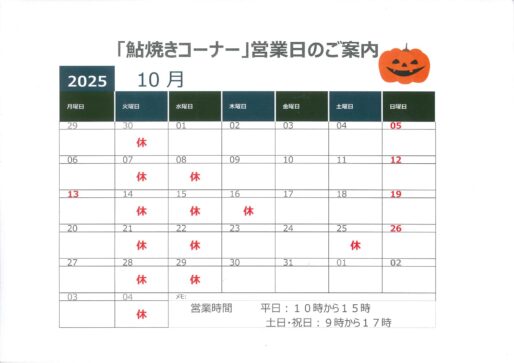 その他は通常通り毎週月・火と休館日(19日)がお休みとなります。