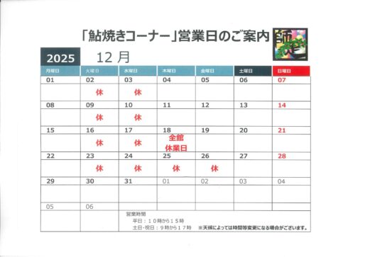 尚、2024年1月1日(月)は休館日となります。ご了承下さい。